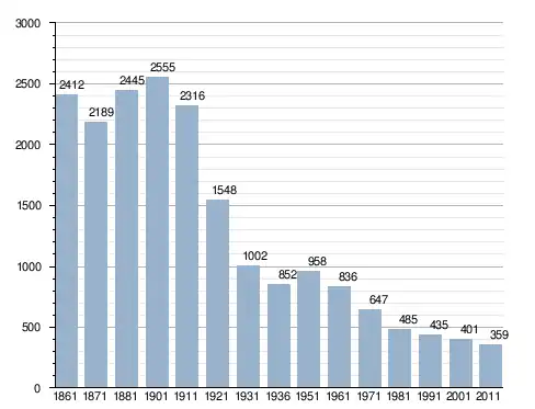 في سنة 1861 بلغ عدد السكان 2٬412 نسمة، وتطور العدد ليصل في سنة 2011 لـ 359 نسمة.