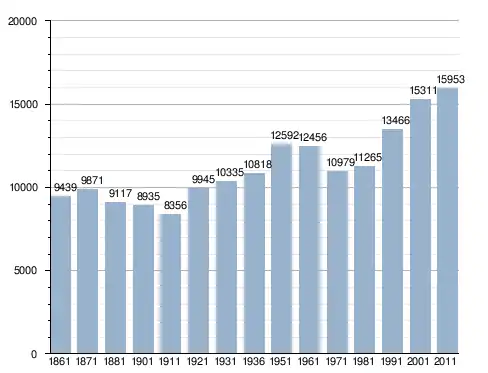 في سنة 1861 بلغ عدد السكان 9٬439 نسمة، وتطور العدد ليصل في سنة 2011 لـ 15٬953 نسمة.