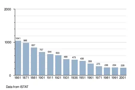 |CitationClass=تم تجاهله (مساعدة) - كل التركيبة السكانية وغيرها من الإحصاءات: الإيطالية معهد الإحصاء الوطني للإحصاءات.