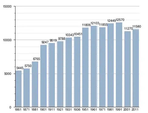 في سنة 1861 بلغ عدد السكان 5٬445 نسمة، وتطور العدد ليصل في سنة 2011 لـ 11٬580 نسمة.