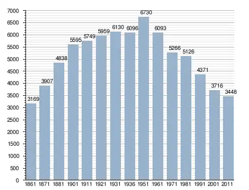 في سنة 1861 بلغ عدد السكان 3٬169 نسمة، وتطور العدد ليصل في سنة 2011 لـ 3٬448 نسمة.