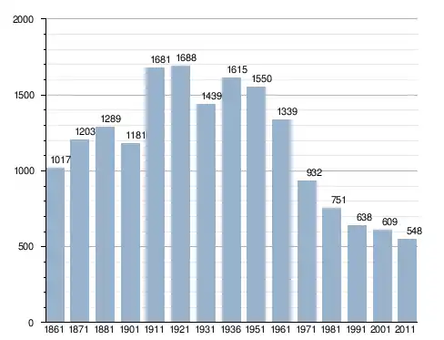 في سنة 1861 بلغ عدد السكان 1٬017 نسمة، وتطور العدد ليصل في سنة 2011 لـ 548 نسمة.
