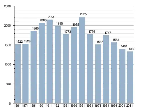 في سنة 1861 بلغ عدد السكان 1٬522 نسمة، وتطور العدد ليصل في سنة 2011 لـ 1٬332 نسمة.