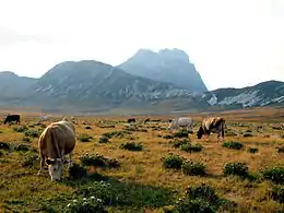 أبقار ترعى في كامبو إمبيراتوري تحت كرنو غراندي في أواخر الصيف.