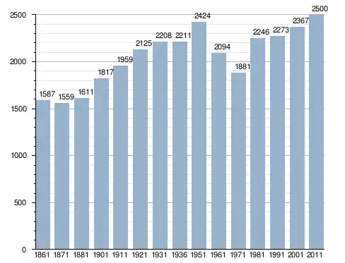 في سنة 1861 بلغ عدد السكان 1٬587 نسمة، وتطور العدد ليصل في سنة 2011 لـ 2٬500 نسمة.