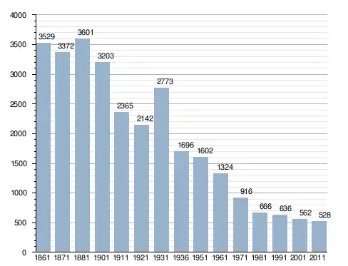 في سنة 1861 بلغ عدد السكان 3٬529 نسمة، وتطور العدد ليصل في سنة 2011 لـ 528 نسمة.