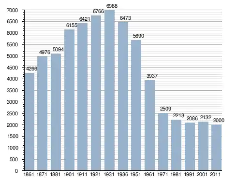 في سنة 1861 بلغ عدد السكان 4٬266 نسمة، وتطور العدد ليصل في سنة 2011 لـ 2٬000 نسمة.