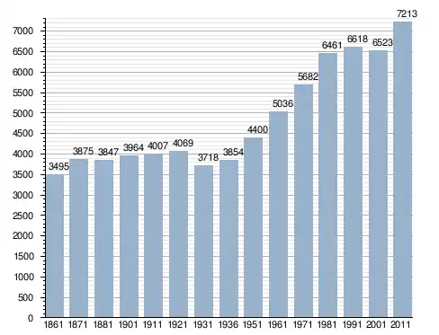 في سنة 1861 بلغ عدد السكان 3٬495 نسمة، وتطور العدد ليصل في سنة 2011 لـ 7٬213 نسمة.