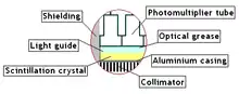 وبعد إصدار الإلكترون للوميض فإنه يسجل عن طريق صمام تضخيم ضوئي الملامسة لسطح البلورة ويرسل نبضة كهربائية إلى الحاسوب الذي يقوم بعد الإشعاعات.