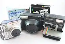 كاميرا بولارويد واثنين من كاميرات فوجي فيلم الفورية مع الفيلم