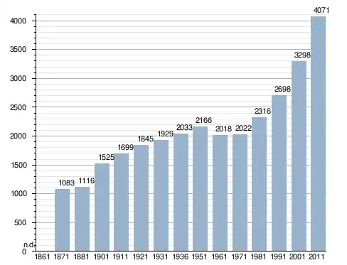 في سنة 1871 بلغ عدد السكان 1٬083 نسمة، وتطور العدد ليصل في سنة 2011 لـ 4٬071 نسمة.