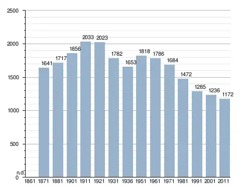 في سنة 1871 بلغ عدد السكان 1٬641 نسمة، وتطور العدد ليصل في سنة 2011 لـ 1٬172 نسمة.