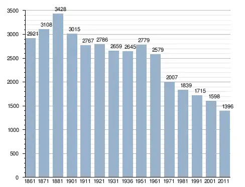 في سنة 1861 بلغ عدد السكان 2٬921 نسمة، وتطور العدد ليصل في سنة 2011 لـ 1٬396 نسمة.