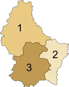 الثلاث مقاطعات للوكسمبورغ ((بالفرنسية: districts), (بالألمانية: Distrikte), (باللوكسمبورغية: Distrikter)) تعتبر اعلى مستوى في التقسيمات الادارية لدوقية لوكسمبورغ الكبرى لوكسمبورغ . وتنقسم هذه المقاطعات إلى اثنى عشر كنتون ( Cantons ) :