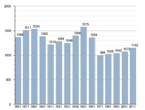 في سنة 1861 بلغ عدد السكان 1٬368 نسمة، وتطور العدد ليصل في سنة 2011 لـ 1٬152 نسمة.