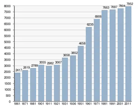 في سنة 1861 بلغ عدد السكان 2٬417 نسمة، وتطور العدد ليصل في سنة 2011 لـ 7٬952 نسمة.