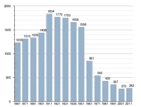 في سنة 1861 بلغ عدد السكان 1٬233 نسمة، وتطور العدد ليصل في سنة 2011 لـ 282 نسمة.