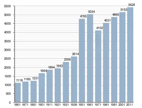 في سنة 1861 بلغ عدد السكان 1٬118 نسمة، وتطور العدد ليصل في سنة 2011 لـ 5٬428 نسمة.