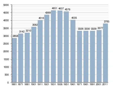 في سنة 1861 بلغ عدد السكان 2٬858 نسمة، وتطور العدد ليصل في سنة 2011 لـ 3٬785 نسمة.