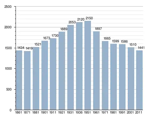 في سنة 1861 بلغ عدد السكان 1٬434 نسمة، وتطور العدد ليصل في سنة 2011 لـ 1٬441 نسمة.