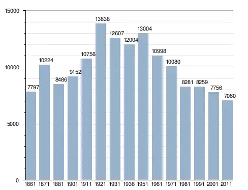 في سنة 1861 بلغ عدد السكان 7٬797 نسمة، وتطور العدد ليصل في سنة 2011 لـ 7٬060 نسمة.
