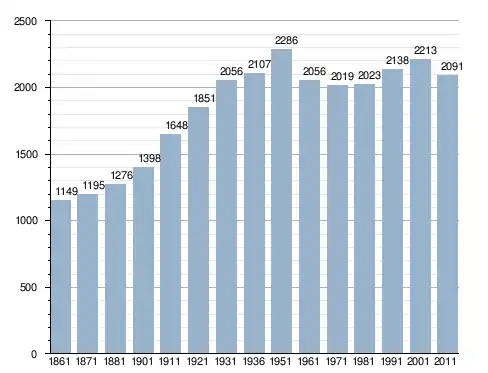 في سنة 1861 بلغ عدد السكان 1٬149 نسمة، وتطور العدد ليصل في سنة 2011 لـ 2٬091 نسمة.
