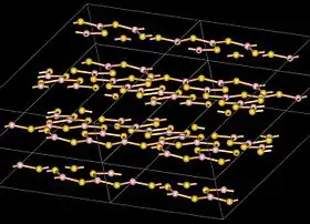 يكون للمادة البلورية بنية مستوية ثلاثية، تكون مرتبة على شكل حلقات من B3S3 وB2S2، بوجود روابط جسرية من الكبريت S، بحيث تتشكل بنية مستوية ثنائية الأبعاد، تكون المسافة بين طبقاتها حوالي 355 بيكومتر، وذلك على العكس من البنية ثلاثية الأبعاد التي يمتلكها ثلاثي أكسيد البورون.[8]