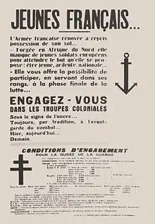 ملصق تجنيدي للكتائب الاستعمارية لقوات فرنسا الحرة