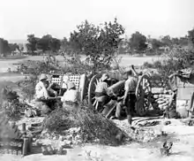 مدفع 75 مم لفرنسا الاستعمارية في الاستخدام قرب سد البحر، جاليبولي 4 يونيو 1915
