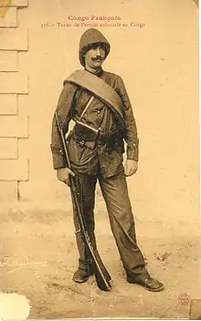 الكونغو الفرنسية، حوالي 1905: مناوش استعماري يرتدي الزي الأزرق للمهندس
