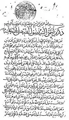 - إسناد الكتاب المثبت على النّسخ الخطية،[30] وكذا في أول النسخ المطبوعة،[31] ينتهي إلى محمد بن سعد مؤلّف كتاب الطبقات.
