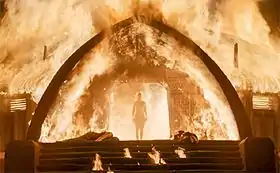 ![]() دنيرس تارجارين بعد قتلها لكل القادة الدوثراكيين الملقبين بال"خال". | ||||