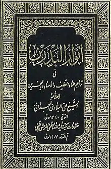 |CitationClass=تم تجاهله (مساعدة) - الطهراني، أقا بزرك، الذريعة إلى تصانيف الشيعة. بيروت: دار الأضواء، 1403 هـ ق. الوسيط