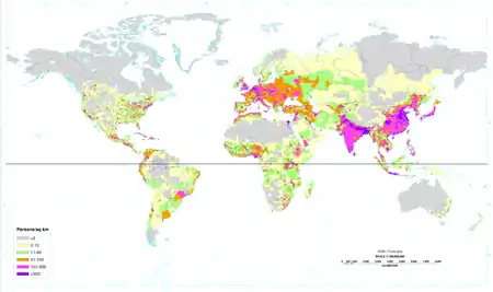 وتحسب المساحة بأي من الوحدات المساحية مثل الكيلومتر المربع أو الميل المربع أو الفدان أو الهكتار أو الدونم وهكذا. يتوزع سكان العالم على سطح الأرض بشكل غير متساوٍ فبينما يوجد مناطق يزدحم بها السكان، يوجد أيضاً مناطق أخرى يقل بها عدد السكان.
