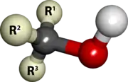 - ثالثية:الكحولات التي ترتبط فيها مجموعة الهيدروكسيل بذرة كربون ترتبط مباشرة بثلاث مجموعات ألكيل، الصيغة العامة: R3-C-OH