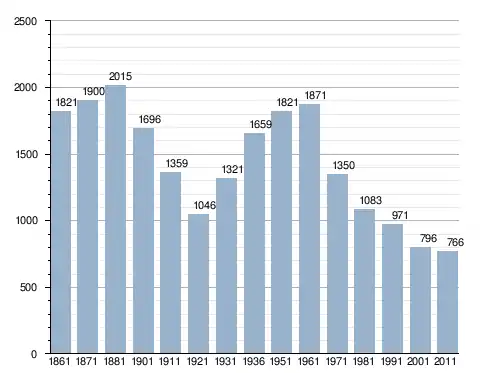 في سنة 1861 بلغ عدد السكان 1٬821 نسمة، وتطور العدد ليصل في سنة 2011 لـ 766 نسمة.