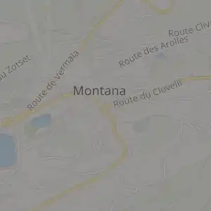 يقع المنتجع في قلب جبال الالب السويسرية في كانتون فاليز. وهو عبارة عن خليط من قريتين كرانز ومونتانا. سياسيا تعرف بمونتانا.