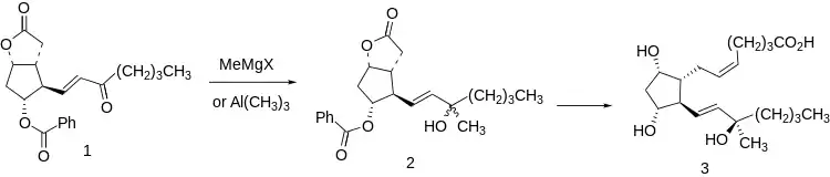 يتم تعطيل التحول الأيضي للبروستاغلاندين الطبيعي عم طريق الأكسدة الأنزيمية لهيدروكسيل C-15 إلى الكيتون المقابل. ويتم منع ذلك مع الاحتفاظ بالنشاط عن طريق المثيلة لإعطاء سلاسل كربينول C-15 الثالث.