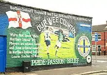 - Hannah Merron (31 August 2009). "Belfast – Unionist mural on Carnforth Street, commemorating of Northern Irish football victory". DSpace@Cambridge. University of Cambridge Library. مؤرشف من الأصل في 03 أكتوبر 2020. اطلع عليه بتاريخ 03 يونيو 2015. الوسيط