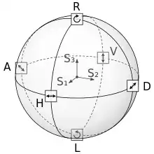 حالات الاستقطاب للأمواج الكهرومغناطيسية يمكن وصفها رياضيا باستخدام عوامل ستوكس (stoks parameter) ومن أجل وصف كامل للاستقطاب تُستخدم العوامل الثلاثة S1، S2، S3. هذه العوامل تُنتِج متجه فضائي ثلاثي الأبعاد، والذي بداخله كل حالات الاستقطاب ممثلة بنقاط. متجهات ستوكس تمثل كل الحالات الفيزيائية الممكنة وتوجد داخل كرة (كُرة بوانكاريه).[1] من الصورة يمكن ملاحظة الاستقطابات التالية: