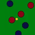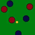 في هذه اللعبة الكرة الحمراء هي الأقرب إلى البولينغ، يليه الأزرق. الفريق الأحمر يحصل على نقطة واحدة، والفريق الأزرق لا شيء