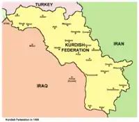كردستان العراق أو إقليم كردستان (بالكردية: هەرێمی کوردستانى عێراق) إقليم كُرديّ يقع شمال العراق ويتمتع بحكم فدرالي،[6] يحده إيران من الشرق وتركيا من الشمال، وسوريا من الغرب وبقية العراق من الجنوب. عاصمتها أربيل بحكم الواقع، تُعرف بـ هولير باللغة الكردية، بينما كركوك العاصمة بحكم القانون.[7] تخضع المنطقة إلى حكومة إقليم كردستان رسمِيّاً.