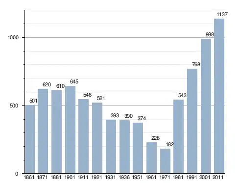 في سنة 1861 بلغ عدد السكان 501 نسمة، وتطور العدد ليصل في سنة 2011 لـ 1٬137 نسمة.