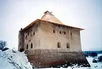 قلعة ليوبشانسك بالقرب ستارايا ادوغا، واحدة من القلاع الأولى من الحجر والخشب، وقد بنيت في القرن الثامن. أبراج وأبواب وجوانب الجدران الحجرية المعزولة، وبقايا القلاع الخشبية الحجرية، تشهد على انتشار هذه الطريقة في البناء ؛ هذه هي حالة البوابة الذهبية في كييف ، وبوابة بالاسم ذاته لفلاديمير .