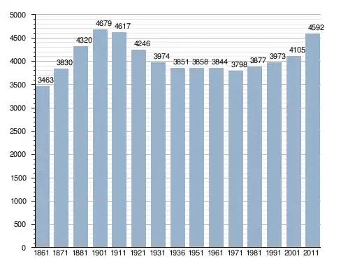 في سنة 1861 بلغ عدد السكان 3٬463 نسمة، وتطور العدد ليصل في سنة 2011 لـ 4٬592 نسمة.