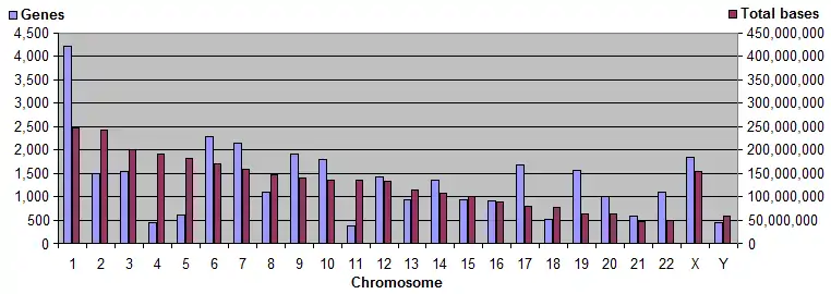 |CitationClass=تم تجاهله (مساعدة)صيانة CS1: BOT: original-url status unknown (link) - النسب المئوية ترجع إلى الجزء من الأيوكروماتين euchromatin التي تم تعينها فيمشروع الجينوم البشري. See http://www.ncbi.nlm.nih.gov/genome/seq/Project.