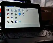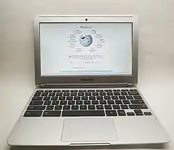 | ديسمبر 2010 | جوجل | Cr-48 (prototype) | 1.66 GHz Intel Atom N455 | 9 ساعة | 2 جب DDR3 | 16 جب SSD | 12.1 بوصة (30.7 سـم) | 3.8 رطل (1.7 كـغ) | ليس للبيع التجاري | [41][42][43] |