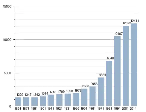 في سنة 1861 بلغ عدد السكان 1٬329 نسمة، وتطور العدد ليصل في سنة 2011 لـ 12٬411 نسمة.