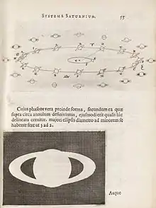 وفي أثناء هذه المرحلة نفسها أدخل هوغنس تحسينات هامة على المقراب ، ودرس ظواهر الانعكاس والانكسار كما نحت عدسات قليلة العيوب.[35] وقد إكتشف بهذه الأدوات حلقات زحل بالإضافة إلى قمره السادس تيتان.[36][37]