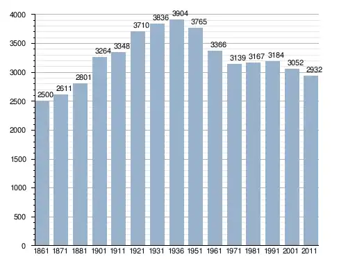 في سنة 1861 بلغ عدد السكان 2٬500 نسمة، وتطور العدد ليصل في سنة 2011 لـ 2٬932 نسمة.